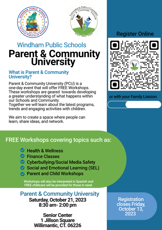 Join us in the return of our Windham Public Schools Parent and Community University. A fun and educational day for everyone.